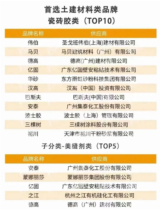 其中,瓷磚膠類位列榜單第四,美縫劑類位列榜單第三,這不僅是實力的見證,更是全球消費者對億固的高度肯定。